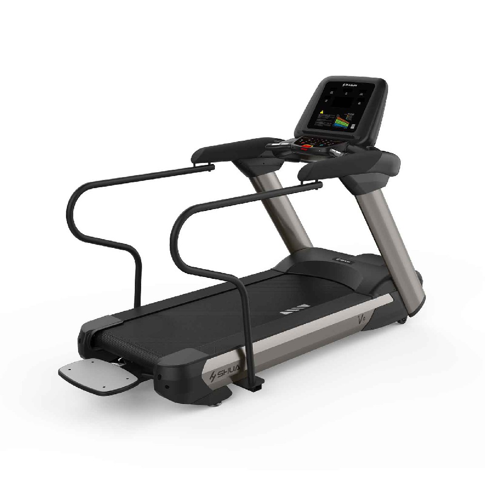 主要功能 跑步训练,心肺耐力训练 1、速度范围:正走 0.1~10km/h,倒走 0.1~5km/h2、坡度范围:-3~15%3、电机参数:AC 马达;额定功率 3.0CHP(2200w);峰值功率 6.0HP(4400w)4、 输入功率:2250w5、 减震系统:橡胶缓冲垫6、跑台尺寸:580mm1570mm7、 跑板规格:厚度 2